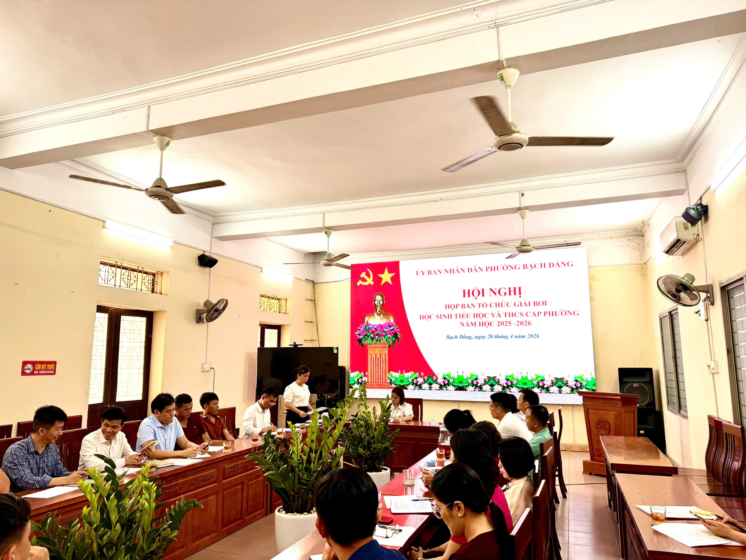 UBND PHƯỜNG BẠCH ĐẰNG TỔ CHỨC HỘI NGHỊ HỌP BAN TỔ CHỨC GIẢI BƠI HỌC SINH TIỂU HỌC VÀ THCS CẤP PHƯỜNG NĂM HỌC 2025 - 2026