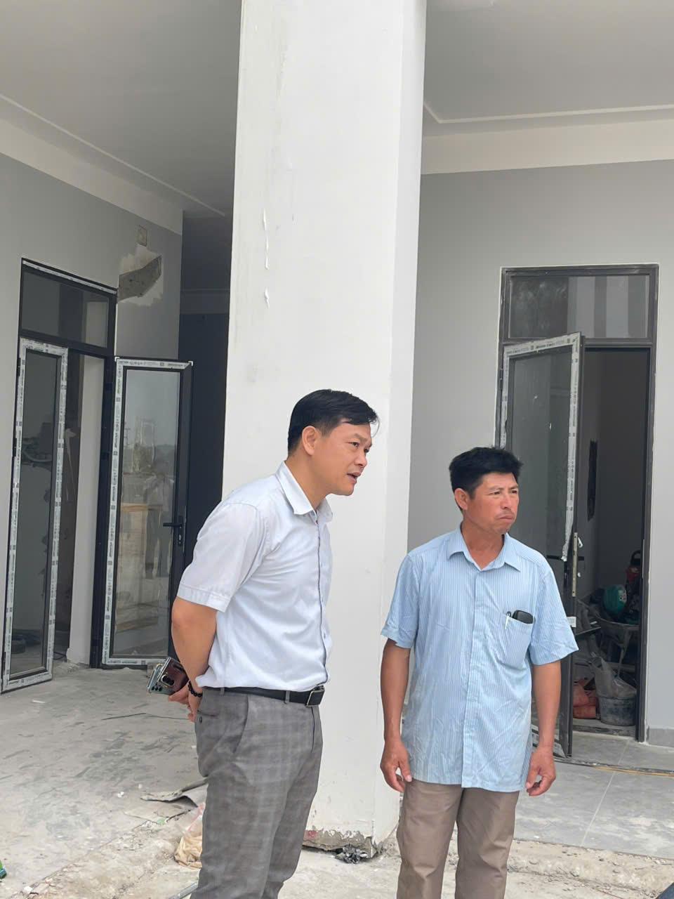 ĐỒNG CHÍ CHỦ TỊCH ỦY BAN NHÂN DÂN PHƯỜNG BẠCH ĐẰNG TRỰC TIẾP KIỂM TRA TIẾN ĐỘ THI CÔNG CÔNG TRÌNH TRƯỜNG THCS MINH ĐỨC